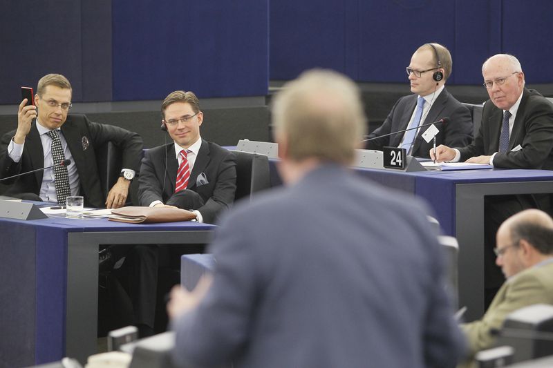 Евродепутатите като цяло останаха глухи за посланията на Финландия, някои от които бяха произнесени дори на френски. Жозеф Дол, който иначе е лидер на най-голямата политическа група - ЕНП (дясно) - призова за подялба на дълга, но Юрки Катайнен му припомни, че нещо подобно на еврооблигациите е имало още с въвеждането на единната валута, когато всички страни-членки получават пари на една и съща цена. Той попита също кой би се съгласил да отпуска още заеми на свръх задлъжнелите страни. Бившият премиер на Белгия, а сега лидер на групата на либералите Ги Верхофстад пък се придържаше към своите често повтаряни идеи за необходимостта от общо европейско правителство и европейско министерство на
